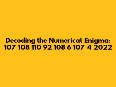 Okay, let's dissect this numerical beast piece by piece. We have 107, 108, 110, 92, 108, 6, 107, 4, and 2022. At first glance, it might seem like a random jumble, but let's try to find some logic. Could these be codes? Dates? Let's brainstorm! First, let's consider the possibility that these numbers represent dates. We have 2022 at the end, which strongly suggests a year. However, the other numbers don't neatly fall into month/day formats. We have numbers like 110 and 92, which exceed the typical range for months or days. So, a straightforward date interpretation might not be the right approach. Next, let's explore the idea that these numbers could be part of a code or cipher. Codes often use numbers to represent letters or symbols. For example, in ASCII code, each character is assigned a unique numerical value. However, without knowing the specific encoding system, it's difficult to directly translate these numbers into meaningful text. We could try different encoding schemes, such as A=1, B=2, and so on, but this might require a lot of trial and error. Another possibility is that these numbers are coordinates or identifiers within a larger system. For example, they could represent locations on a map, entries in a database, or positions in a sequence. To decipher this, we would need to understand the context in which these numbers are used. Are they related to a specific project, dataset, or system? Without more information, it's hard to pinpoint their exact meaning. Additionally, it's worth considering whether these numbers are simply arbitrary and don't have any inherent meaning. Sometimes, numbers are used as placeholders or identifiers without any specific logic behind them. In such cases, trying to find a hidden pattern might be futile. So, as we break down the components of 107 108 110 92 108 6 107 4 2022, we need to keep an open mind and explore different possibilities. It could be a date, a code, a set of coordinates, or something else entirely. The key is to gather more information and context to narrow down the options.