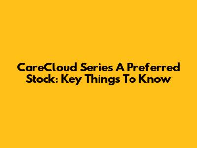 CareCloud Series A Preferred Stock: Key Things To Know