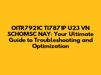 Optimizing OITR7921C TI7871P U23 VN SCHOMSC NAY