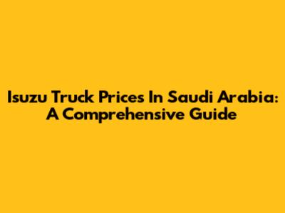 Isuzu Truck Prices In Saudi Arabia: A Comprehensive Guide