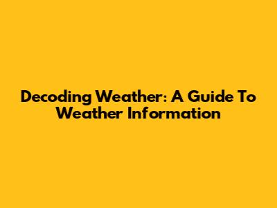 Decoding Weather: A Guide To Weather Information
