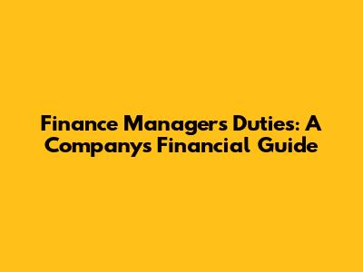 Finance Manager's Duties: A Company's Financial Guide