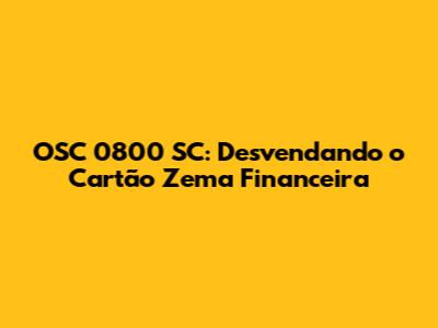 OSC 0800 SC: Tudo Sobre O Cartão Zema Financeira