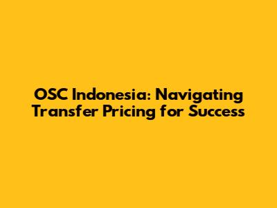 OSC Indonesia: Navigating Transfer Pricing For Success