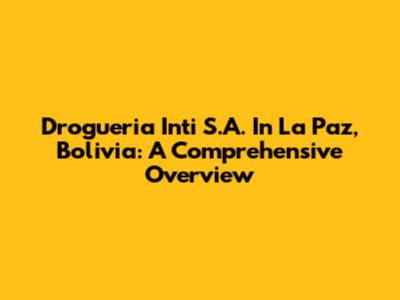 Drogueria Inti S.A. In La Paz, Bolivia: A Comprehensive Overview