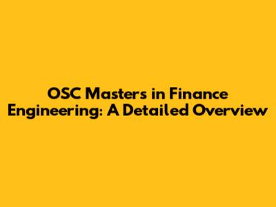 OSC Masters In Finance Engineering: A Detailed Overview
