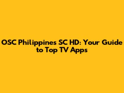 OSC Philippines SC HD: Your Guide To Top TV Apps