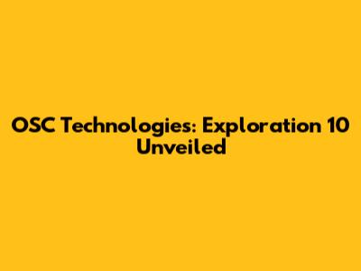 OSC Technologies: Exploration 10 Unveiled