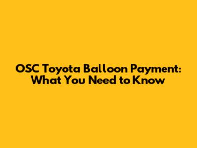 OSC Toyota Balloon Payment: What You Need To Know