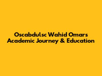Oscabdulsc Wahid Omar's Academic Journey & Education