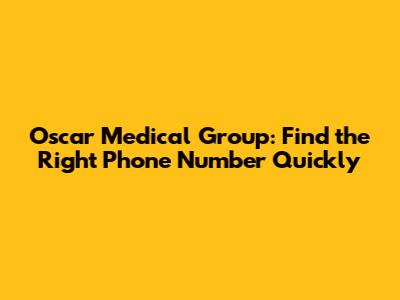 Oscar Medical Group: Find The Right Phone Number Quickly