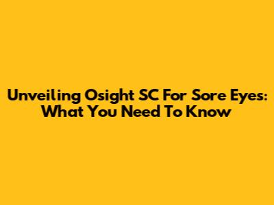Unveiling Osight SC For Sore Eyes: What You Need To Know
