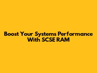 Boost Your System's Performance With SCSE RAM