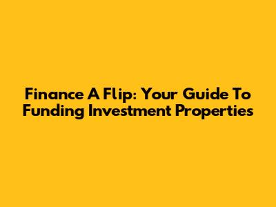 Finance A Flip: Your Guide To Funding Investment Properties