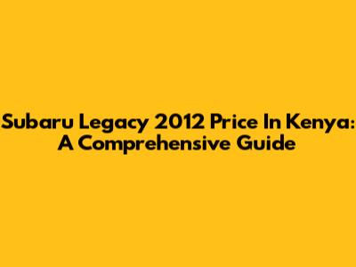 Subaru Legacy 2012 Price In Kenya: A Comprehensive Guide