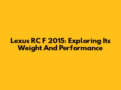 Lexus RC F 2015: Exploring Its Weight And Performance