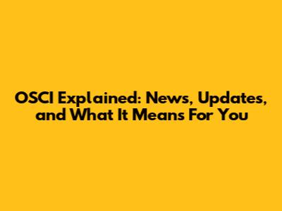 OSCI Explained: News, Updates, And What It Means For You