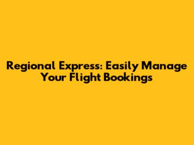 Regional Express: Easily Manage Your Flight Bookings