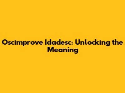 Oscimprove Idadesc: Unlocking The Meaning