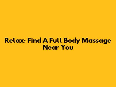 Relax: Find A Full Body Massage Near You
