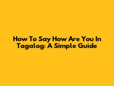 How To Say "How Are You" In Tagalog: A Simple Guide