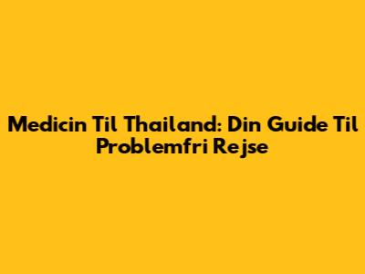 Medicin Til Thailand: Din Guide Til Problemfri Rejse