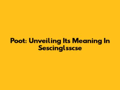 Poot: Unveiling Its Meaning In Sescinglsscse