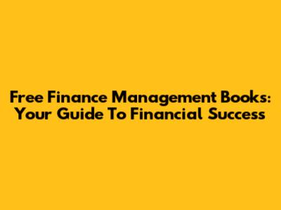 Free Finance Management Books: Your Guide To Financial Success
