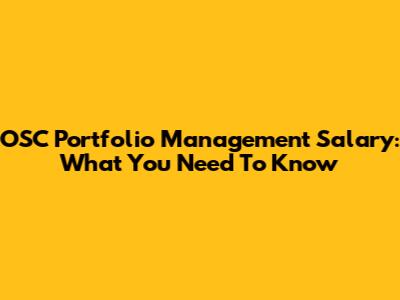 OSC Portfolio Management Salary: What You Need To Know