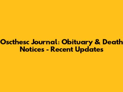 Oscthesc Journal: Obituary & Death Notices - Recent Updates