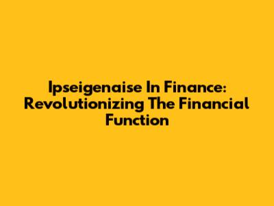 Ipseigenaise In Finance: Revolutionizing The Financial Function