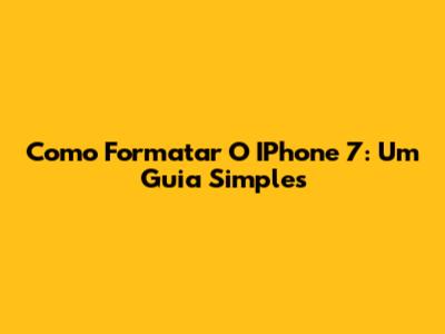 Como Formatar O IPhone 7: Um Guia Simples