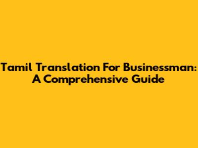 Tamil Translation For Businessman: A Comprehensive Guide