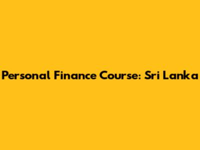 Personal Finance Course: Sri Lanka