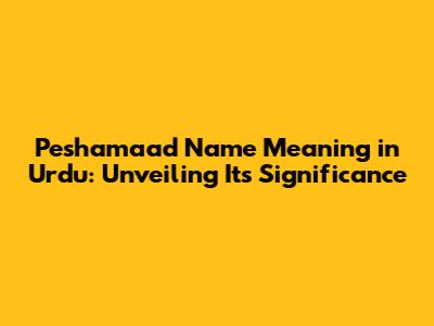 Peshamaad Name Meaning In Urdu: Unveiling Its Significance