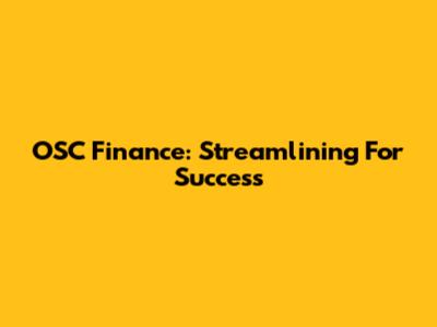 OSC Finance: Streamlining For Success