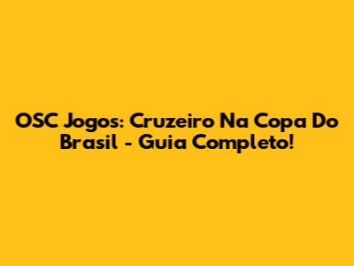 OSC Jogos: Cruzeiro Na Copa Do Brasil - Guia Completo!