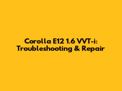 Corolla E12 1.6 VVT-i: Troubleshooting & Repair