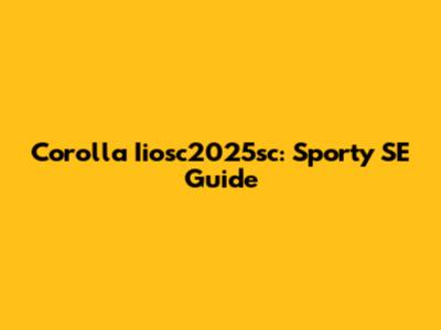 Corolla Iiosc2025sc: Sporty SE Guide