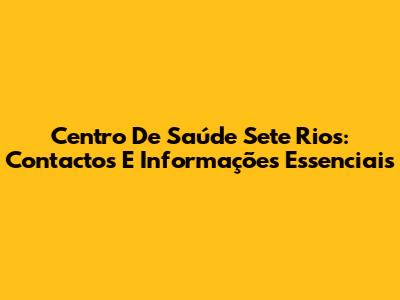 Centro De Saúde Sete Rios: Contactos E Informações Essenciais