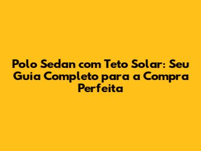 Polo Sedan Com Teto Solar: Seu Guia Completo Para A Compra Perfeita
