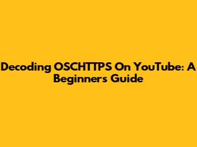 Decoding OSCHTTPS On YouTube: A Beginner's Guide