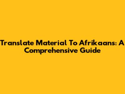Translate Material To Afrikaans: A Comprehensive Guide