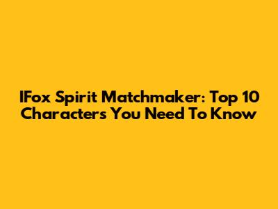IFox Spirit Matchmaker: Top 10 Characters You Need To Know