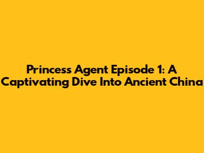 Princess Agent Episode 1: A Captivating Dive Into Ancient China