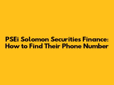 PSEi Solomon Securities Finance: How To Find Their Phone Number