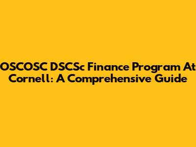 OSCOSC DSCSc Finance Program At Cornell: A Comprehensive Guide