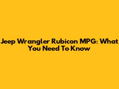 Jeep Wrangler Rubicon MPG: What You Need To Know