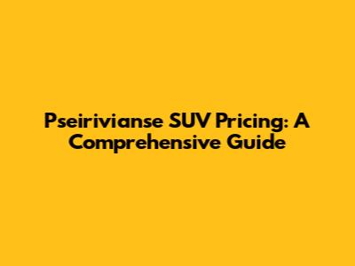 Pseirivianse SUV Pricing: Unveiling Value And Features