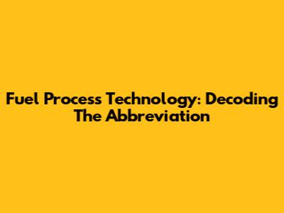 Fuel Process Technology: Decoding The Abbreviation
